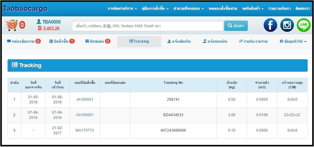 คุณลูกค้าหลายท่านอาจหงุดหงิดใจในการเข้าเช็คสถานะในแต่ละออเดอร์ เพียงคลิ๊กเข้าไปที่ปุ่ม Tracking คุณลูกค้าจะสามารถเช็คสถานะสินค้ารวมทุกออเดอร์ได้ว่ามีการอัพเดทวันที่เข้าโกดังจีน-ไทย เมื่อไหร่? ทางบริษัทจึงปรับปรุงระบบเพื่อตอบสนองความต้องการ และการใช้งานเพื่ออำนวยความสะดวกให้แก่ลูกค้าและคุณลูกค้าสามารถเช็ครายละเอียดสินค้าได้จากหน้าการจัดการนี้หน้าเดียวค่ะ
