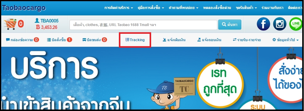 1.เข้าสู่ระบบจากนั้นคลิ๊กที่หัวข้อ Tracking