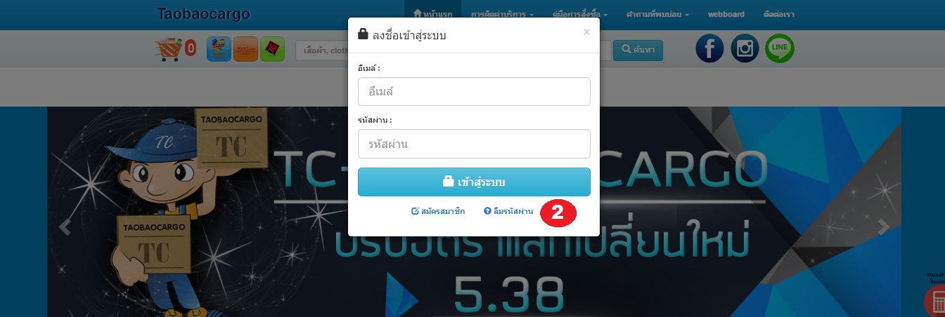 2) จากนั้นคลิกที่คำว่า ลืมรหัสผ่าน