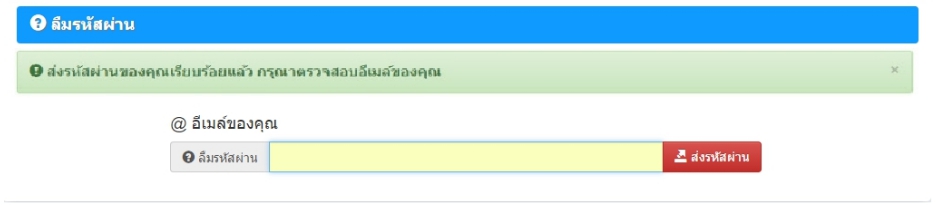 ระบบจะแจ้งว่าได้ส่งรหัสผ่านไปให้คุณลูกค้าทางอีเมล์เรียบร้อยแล้ว กรุณาตรวจสอบอีเมล์ของคุณ
