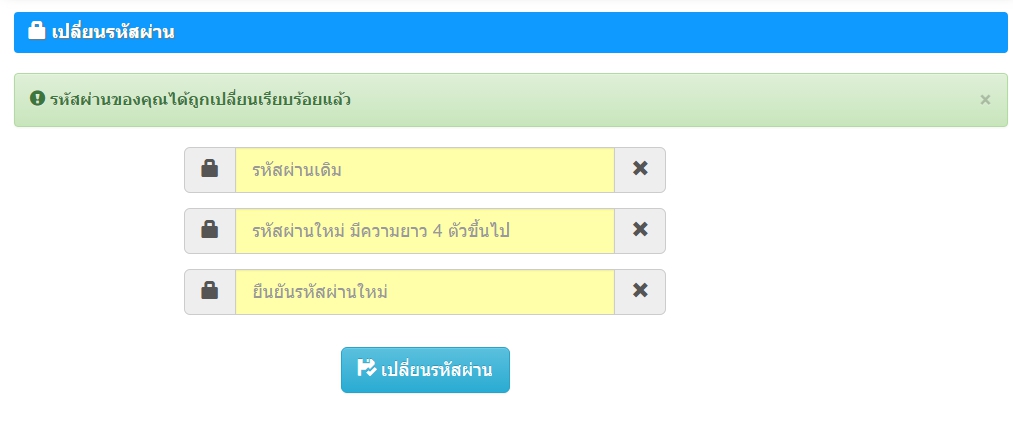ระบบจะแจ้งว่าได้บันทึกรหัสผ่านใหม่เรียบร้อยแล้ว