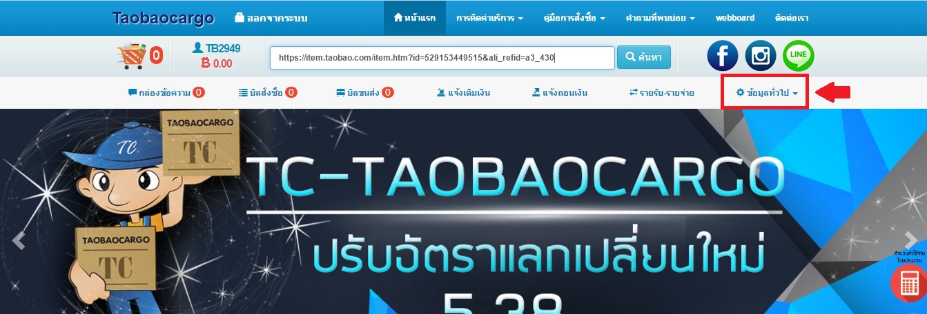 หลังจากคุณลูกค้า Login เข้าสู่บัญชีของตัวเองได้แล้ว ให้คลิ๊กไปที่เมนูข้อมูลทั่วไป