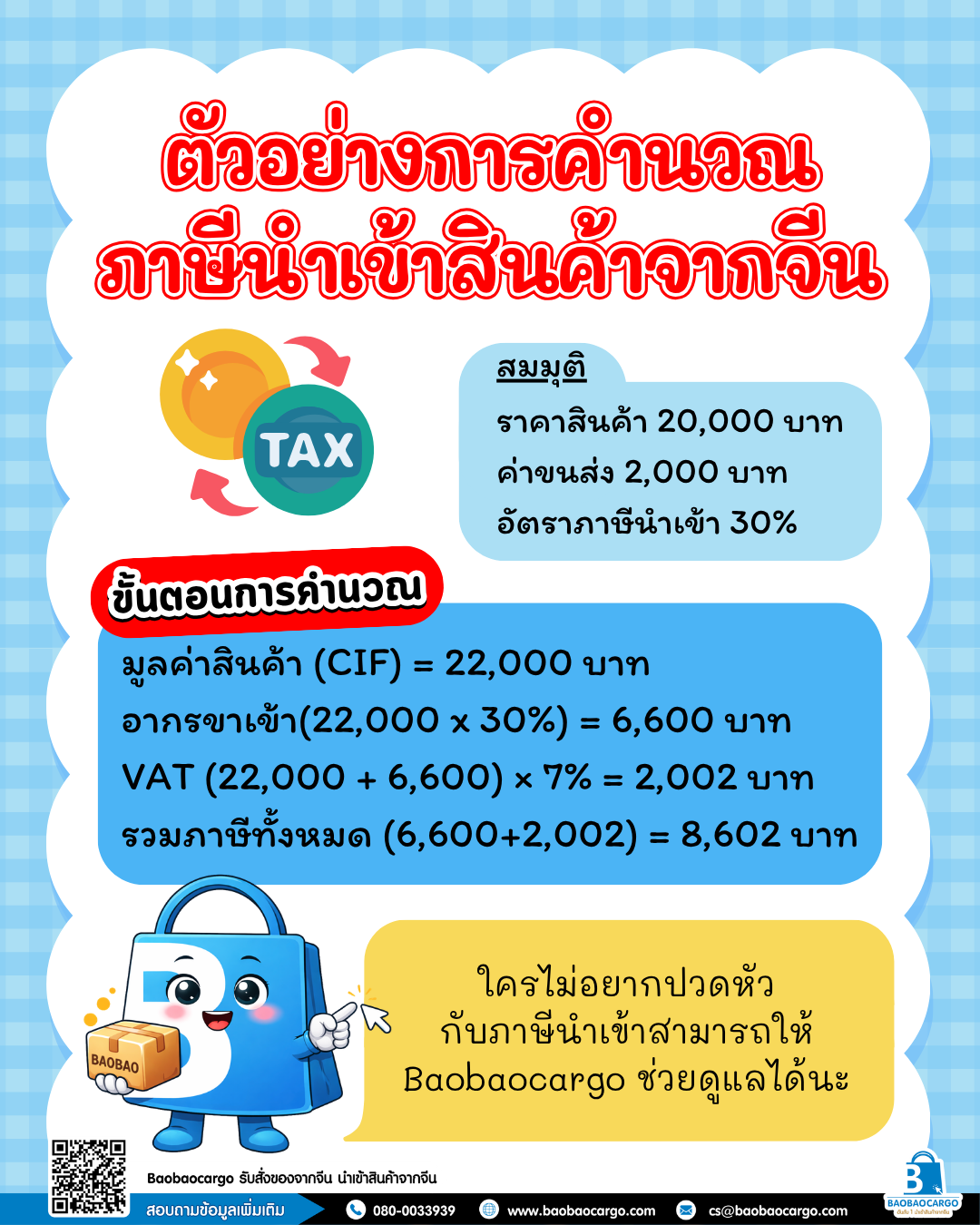 ตัวอย่างการคำนวณภาษีนำเข้าสินค้าจากจีน