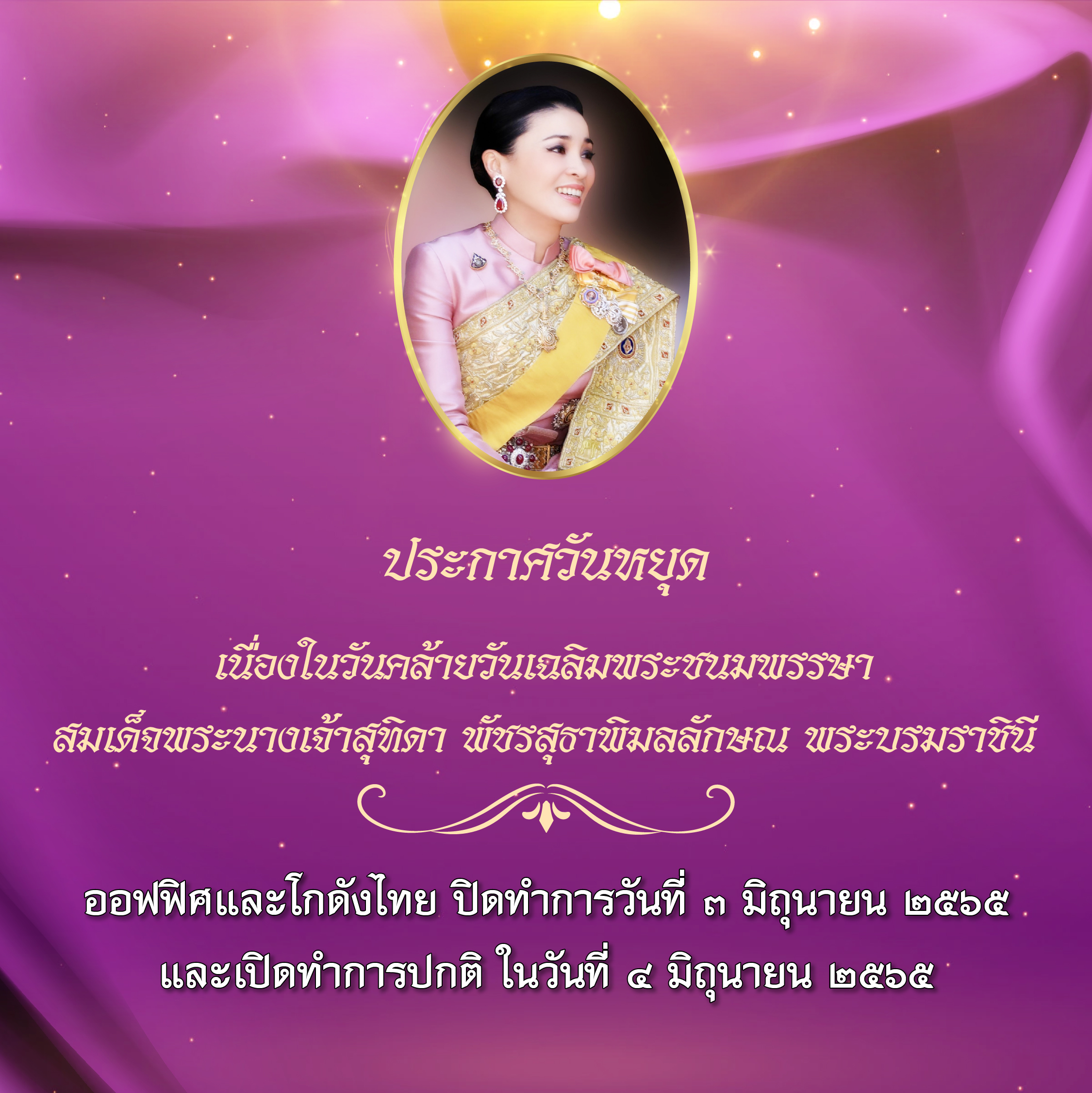ประกาศวันหยุดวันที่ ๓ มิถุนายน ๒๕๖๕...