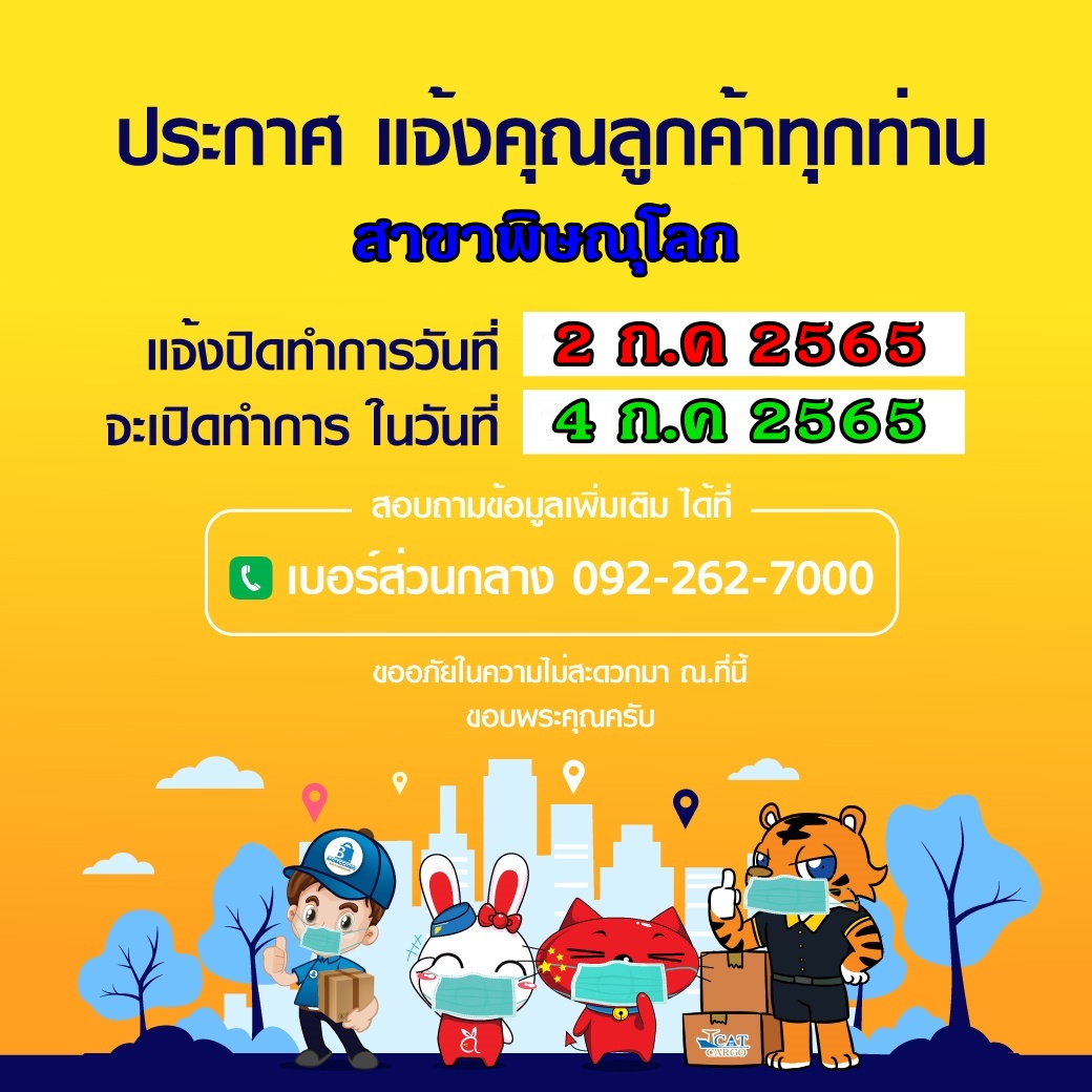 จุดรับสินค้า สาขาพิษณุโลกปิดทำการ 1 วัน...