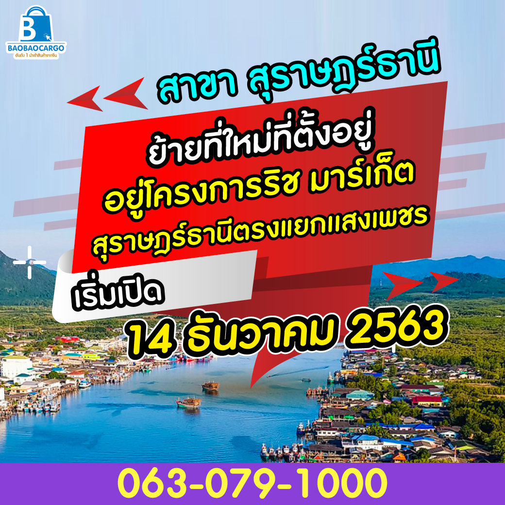 เตรียมย้ายสาขาสุราษฎร์ธานีแล้วนะคะ พร้อมโปรโมชั่น ให้บริการขนส่งในไทยไปสาขาฟรี ถ...