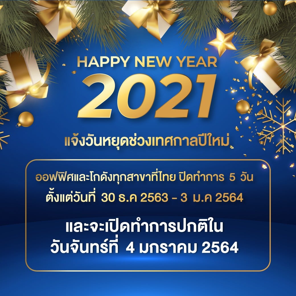 ประกาศแจ้งวันหยุดเทศกาลปีใหม่ ออฟฟิตและโกดังที่ไทยทุกสาขาปิดทำการ วันที่ 30 ธันว...