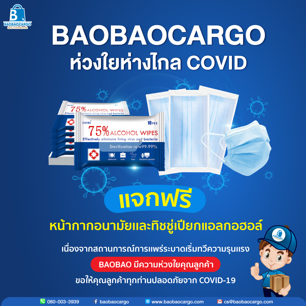 BAOBAOCARGO ห่วงใยห่างไกล COVID เเจกฟรีหน้ากากอนามัยเเละทิชชู่เปียกแอลกอฮอล์...