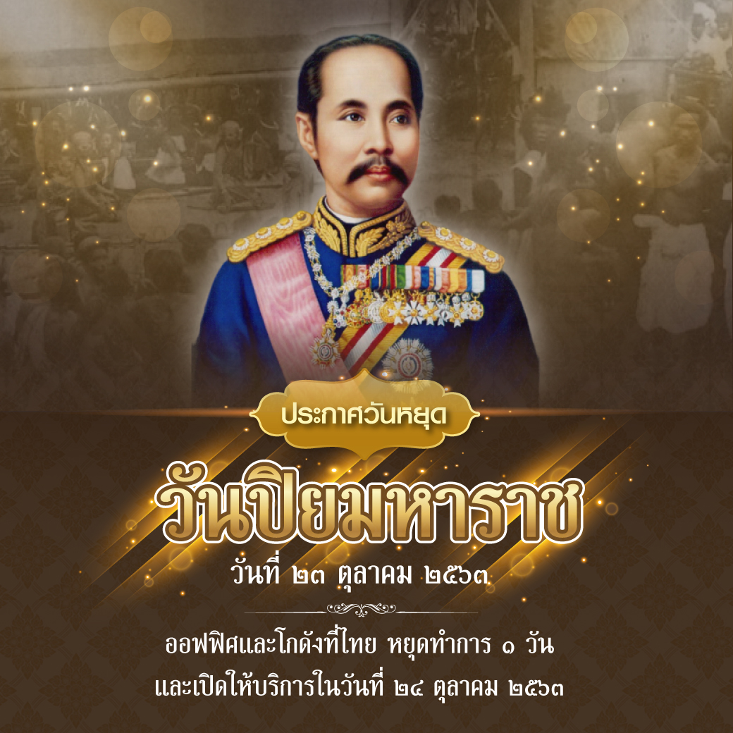 ประกาศแจ้งวันหยุด เนื่องในวันปิยมหาราช วันที่ ๒๓ ตุลาคม ๒๕๖๓ ...
