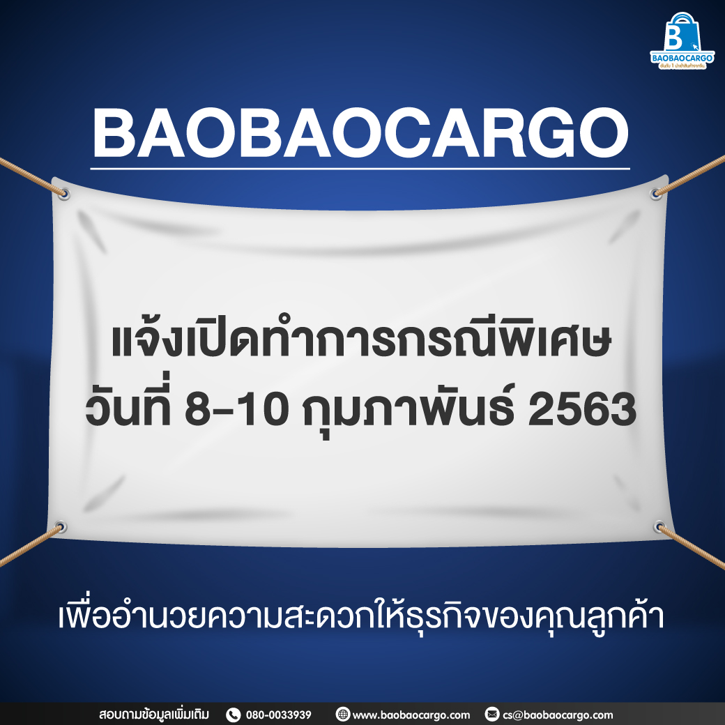 แจ้งเปิดทำการกรณีพิเศษ วันที่ 8-10 กุมภาพันธ์ 2563 ...