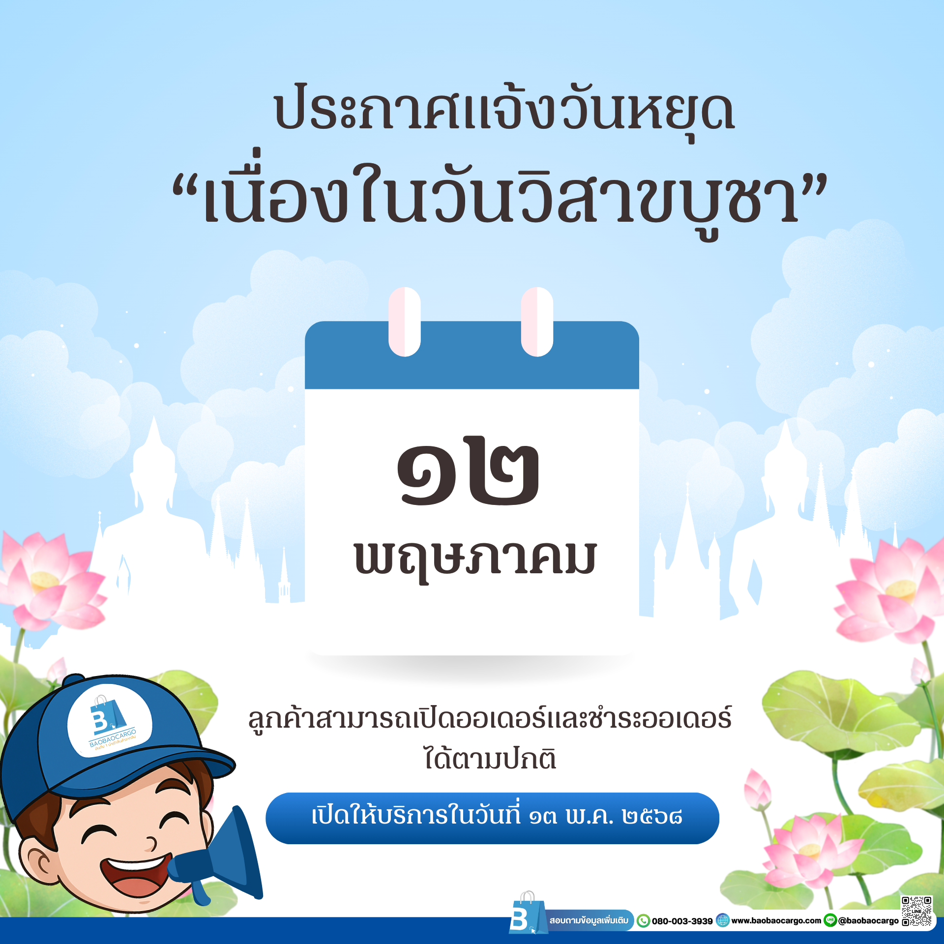 ออฟฟิศ และโกดังไทย ปิดทำการ 13-16 เมษายน 68...