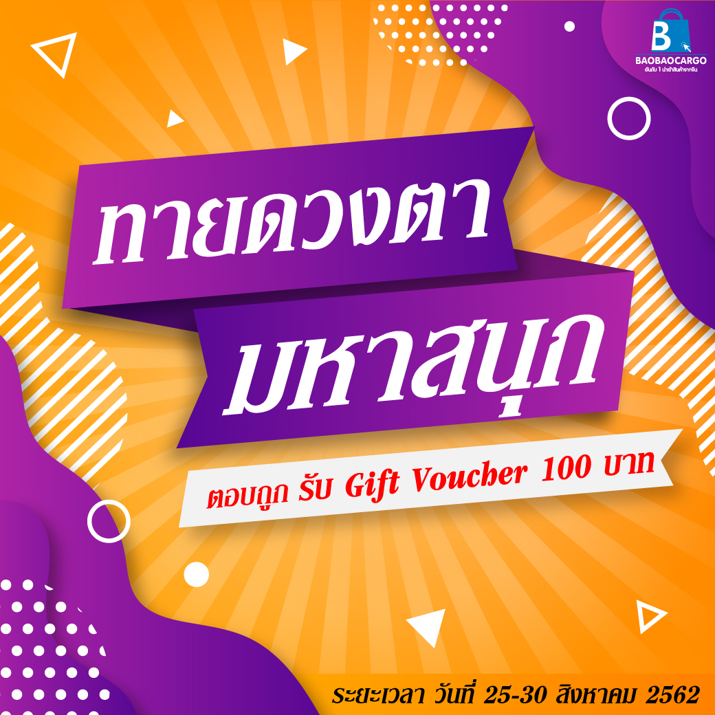 Baobao Game ทายดวงตา..มหาสนุก วันที่ 25-30 สิงหาคม 2562 รับ Gift Voucher ส่วนลดค...
