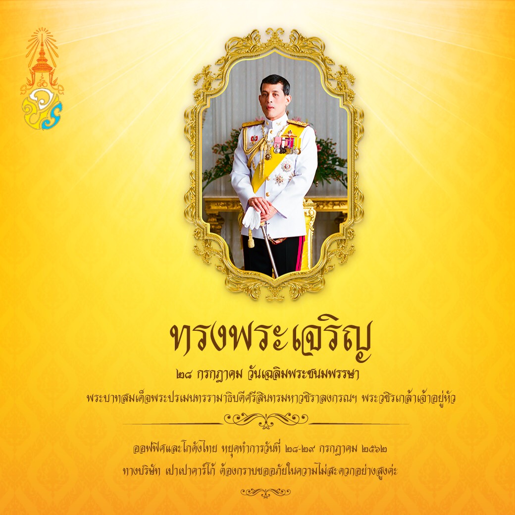 ประกาศวันหยุดในวันที่ 28-29 กรกฎาคม 2562 เนื่องในวันเฉลิมพระชนมพรรษา ของสมเด็จพร...