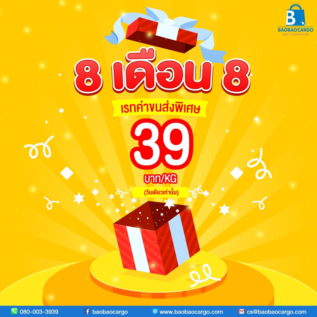 8.8 SuperSale รับเลยค่าขนส่งกิโลกรัมละ 39 บาท...