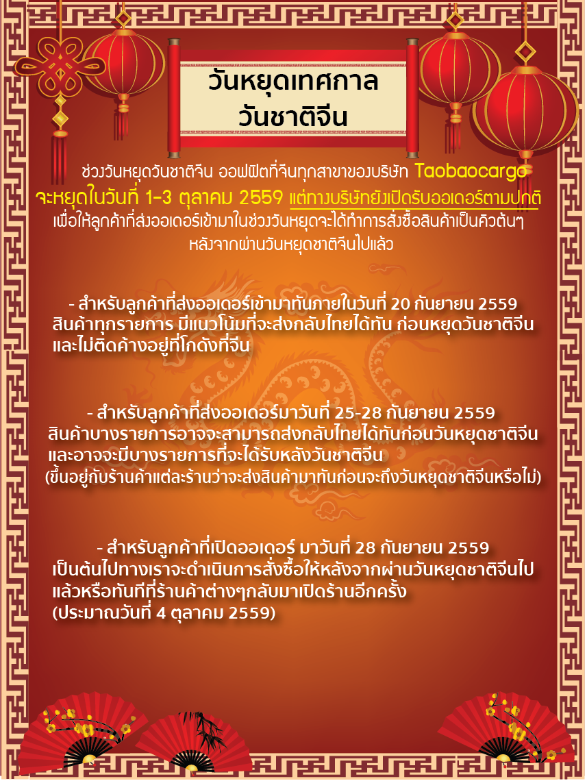 วันหยุดเทศกาลไหว้พระจันทร์ 15-17 ก.ย. 59...