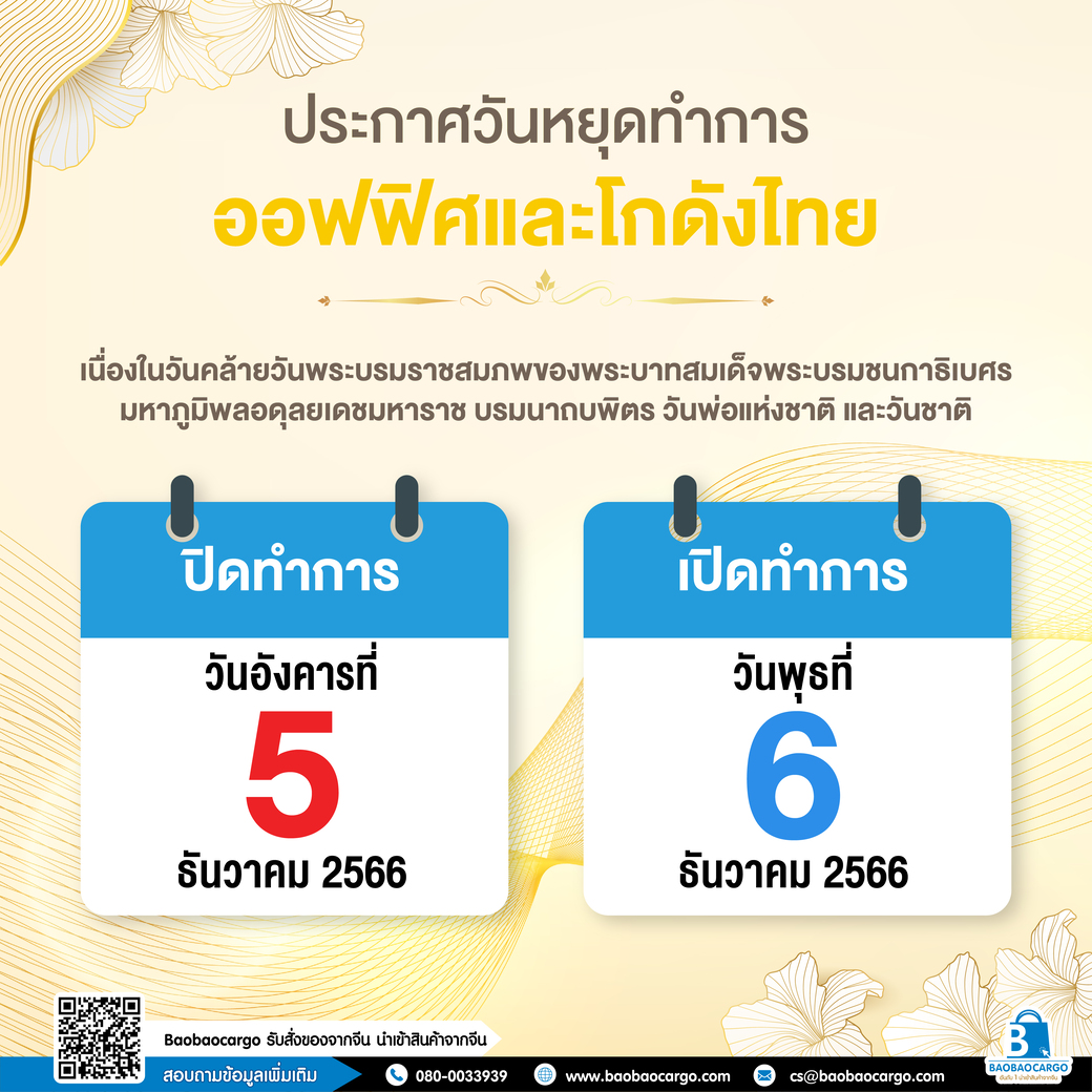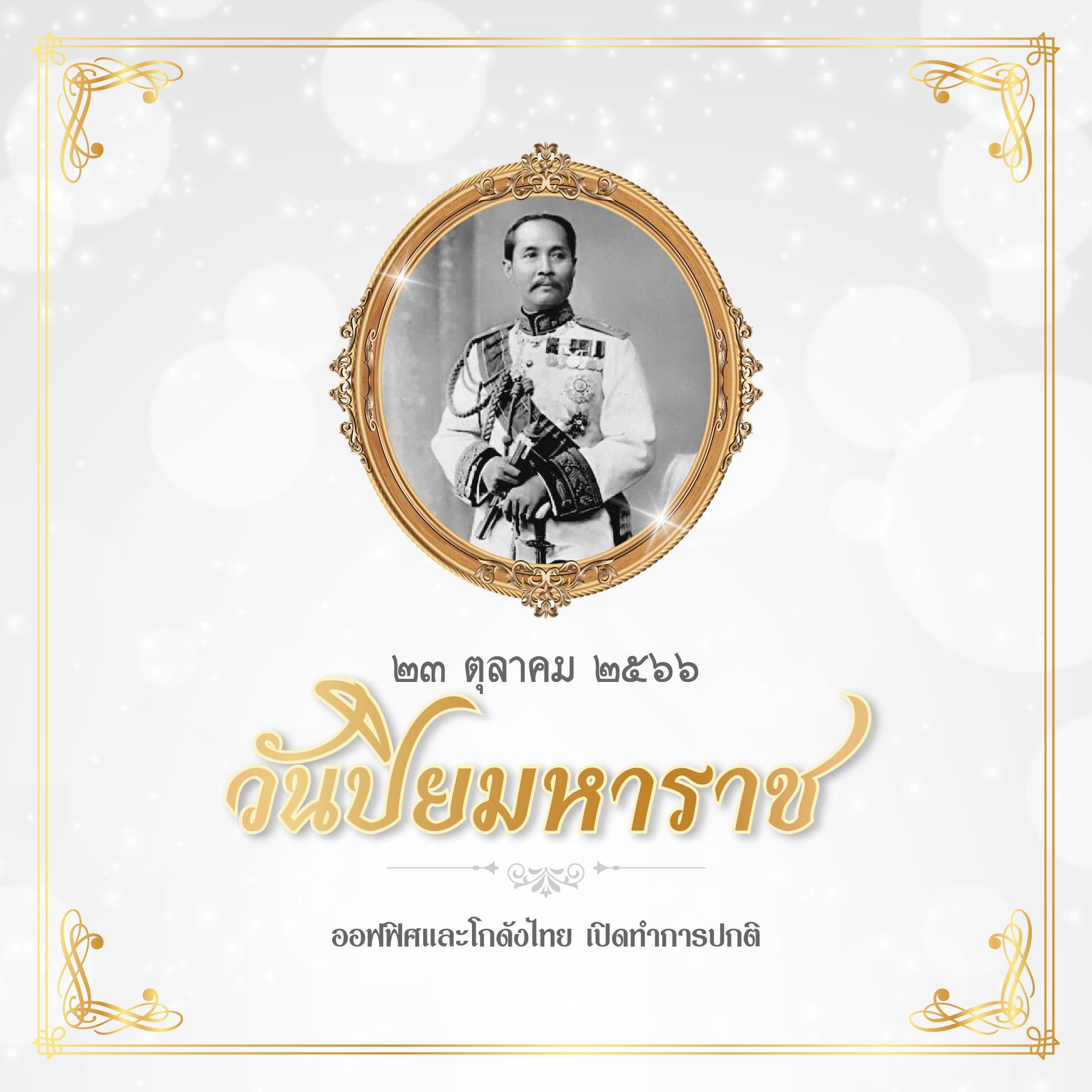 ๒๓ ตุลาคม ๒๕๖๖ วันปิยมหาราช ออฟฟิศและโกดังไทย เปิดทำการปกติ...