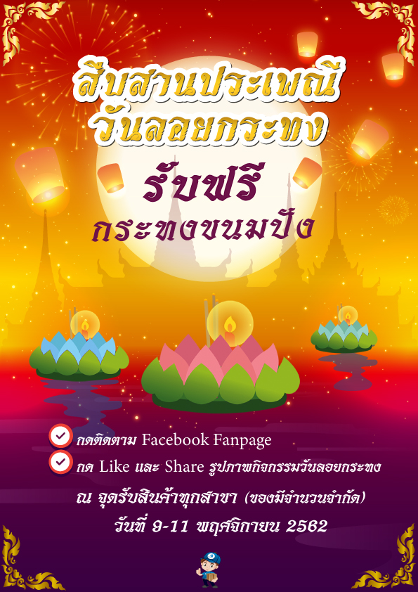 สืบสานมรดกทางวัฒนธรรม "วันลอยกระทง"รับฟรีกระทงขนมปัง ณ จุดรับสินค้าทุกสาขา