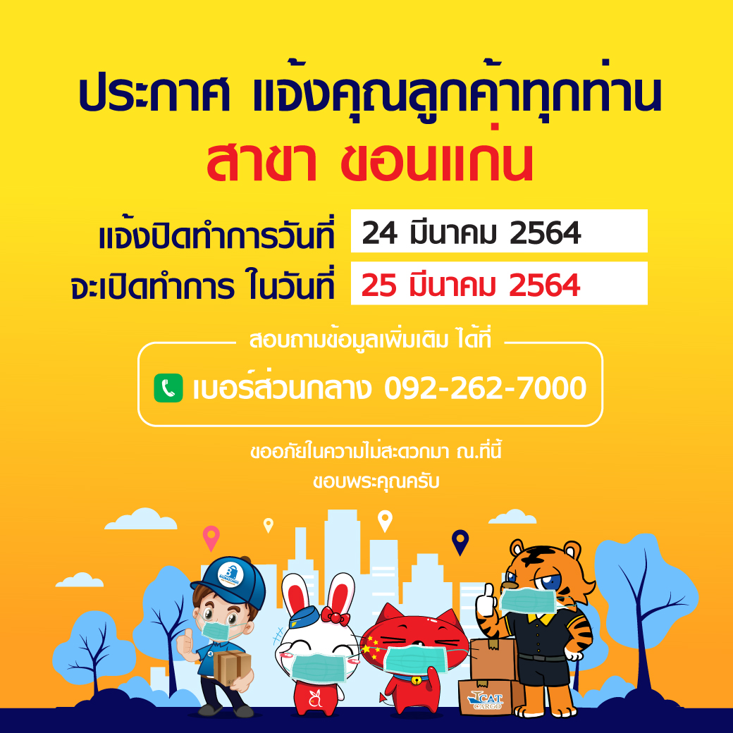 แจ้ง!! ปิดสาขาขอนแก่น 1 วันทำการนะคะ