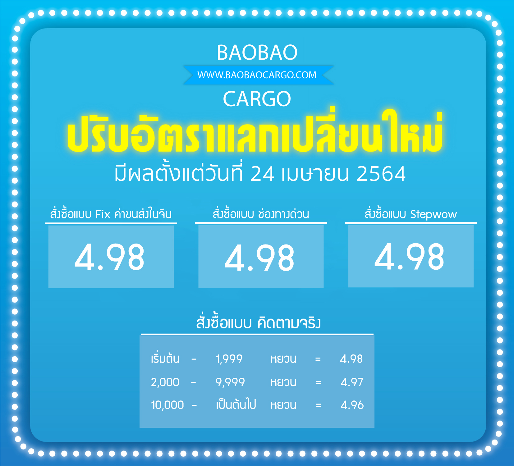 Baobao Cargo ปรับอัตราแลกเปลี่ยนใหม่