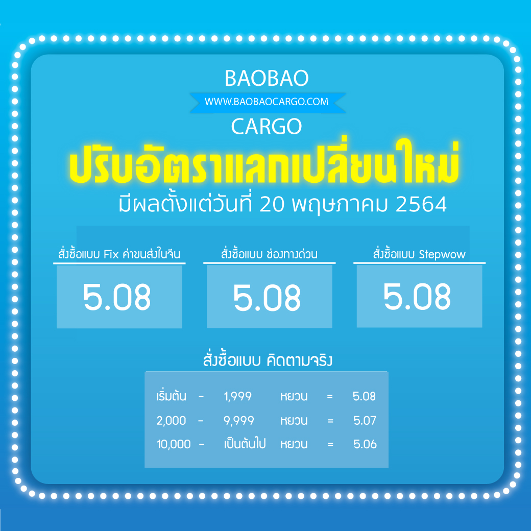 Baobao cargo ปรับอัตราแลกเปลี่ยนใหม่เป็น "5.08"
