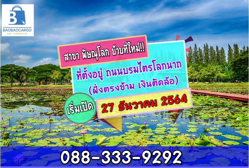 สาขาพิษณุโลก ย้ายที่ตั้งจุดรับสินค้า ไปยังที่ตั้งใหม่ ถนน บรมไตรโลกนาถ เริ่ม 27 ธันวาคม 2564