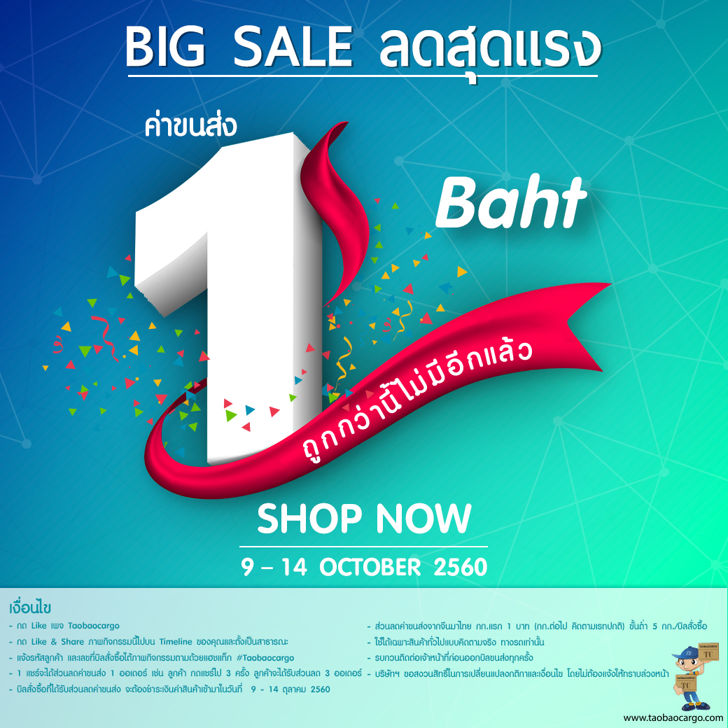 BIG SALE ลดสุดแรง!!!! ค่าขนส่ง 1 บาท ถูกกว่านี้ไม่มีอีกแล้ว