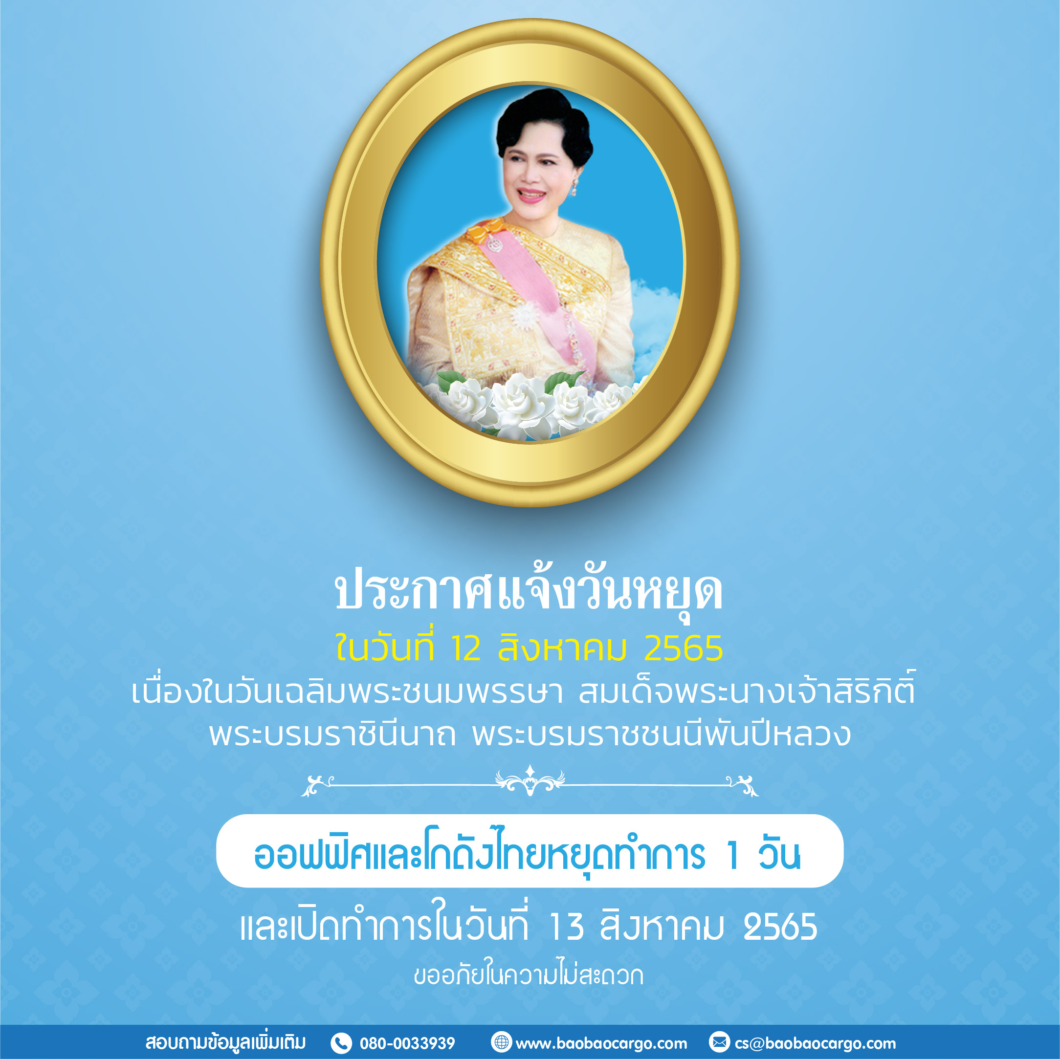 ประกาศวันหยุดเนื่องในวันเฉลิมพระชนมพรรษาสมเด็จพระนางเจ้าสิริกิติ์ พระบรมราชินีนาถ พระบรมราชชนนีพันปีหลวง