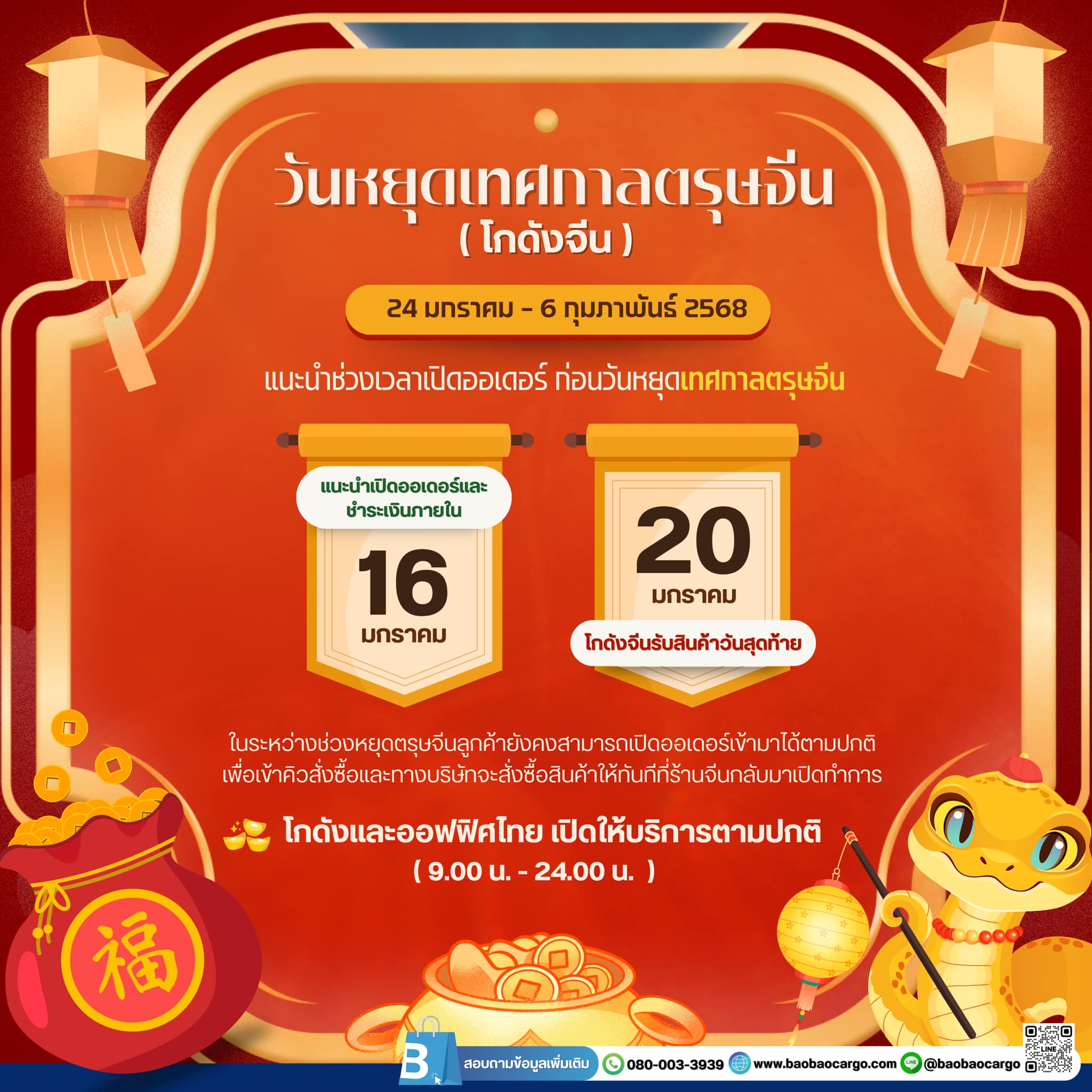 ประกาศเเจ้งวันหยุด เทศกาลตรุษจีน 2568