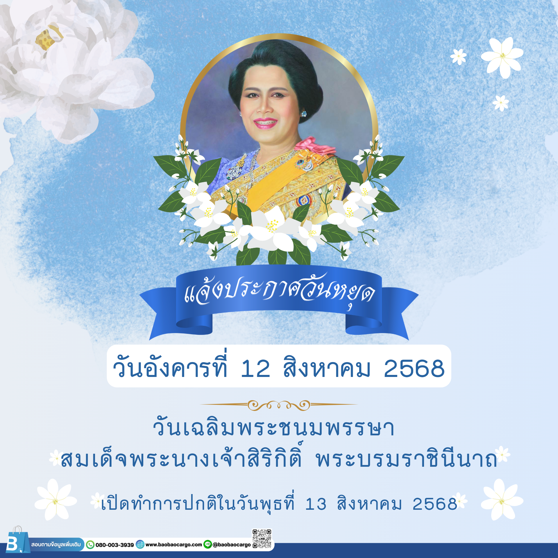 หยุดทำการ วันที่ 12 สิงหาคม 2568