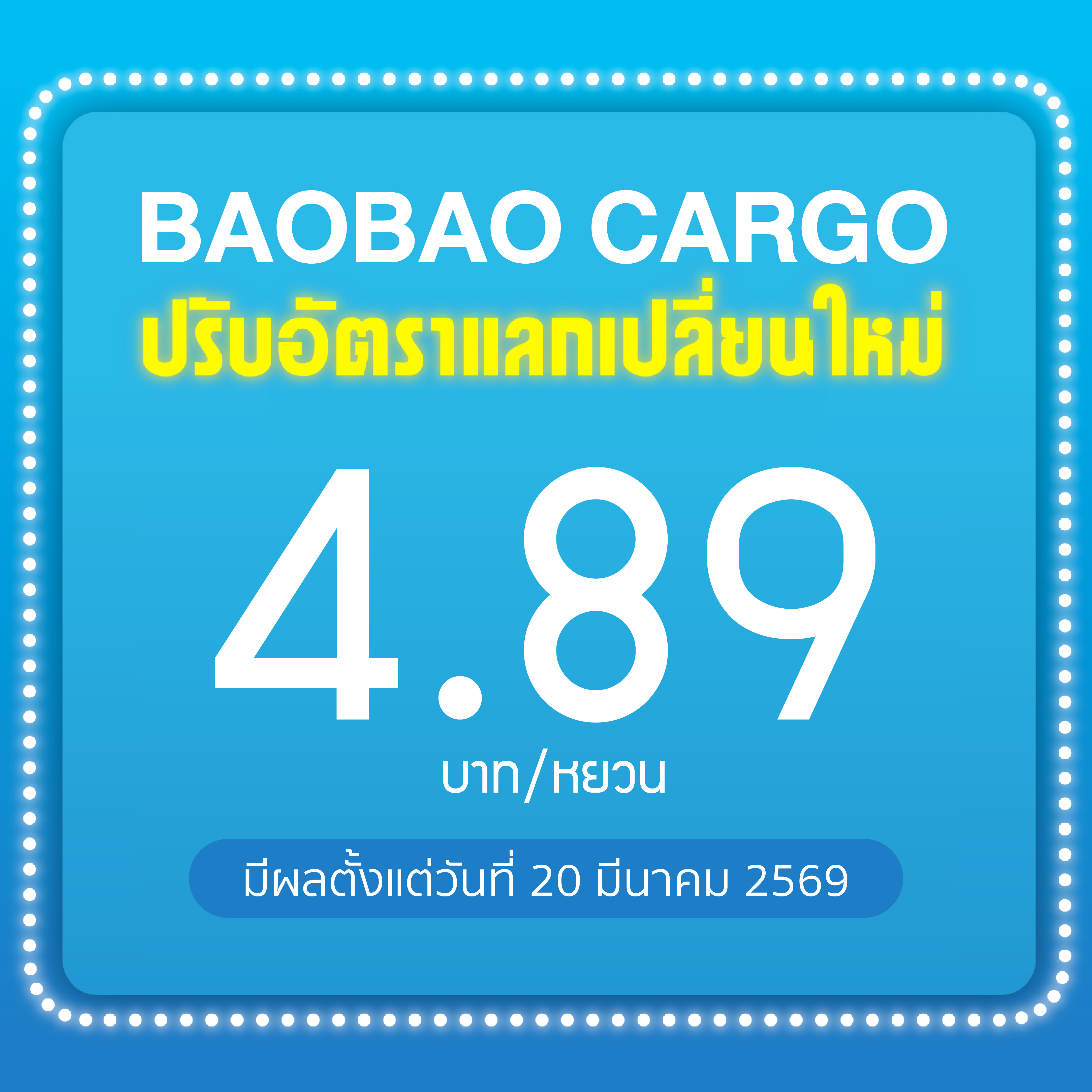 BAOBAOCARGO ปรับเรทอัตราแลกเปลี่ยนใหม่
