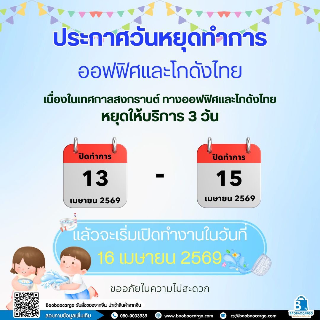 ออฟฟิศ & โกดังไทย หยุดวันที่ 13–15 เม.ย. 2569