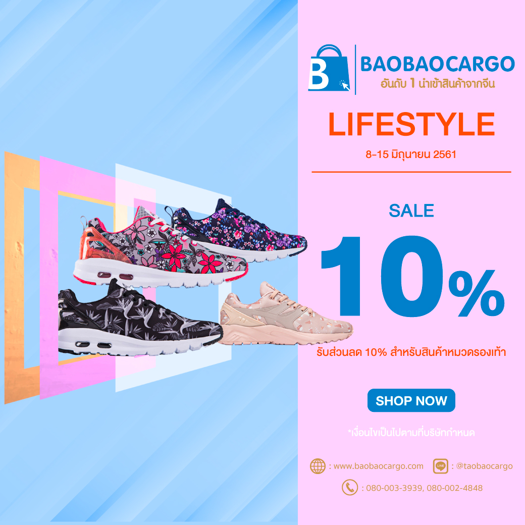 BAOBAOCARGO LIFESTYLE รับส่วนลด 10% สำหรับสินค้าหมวดรองเท้า