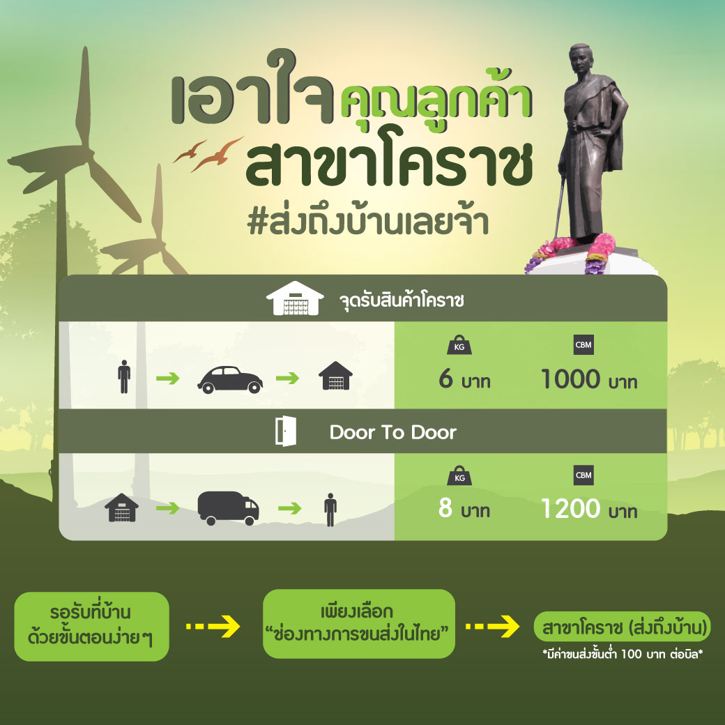 ชาวเมืองโคราช ลูกย่าโม จัดส่งถึงบ้าน ค่าบริการจัดส่ง8฿/กิโลกรัมเท่านั้น