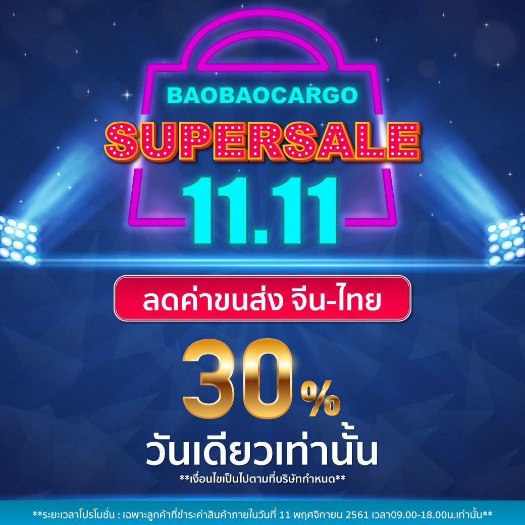 BAOBAOCARGO SUPERSALE 11.11 ลด30% ค่าขนส่งจีน-ไทย วันเดียวเท่านั้น!