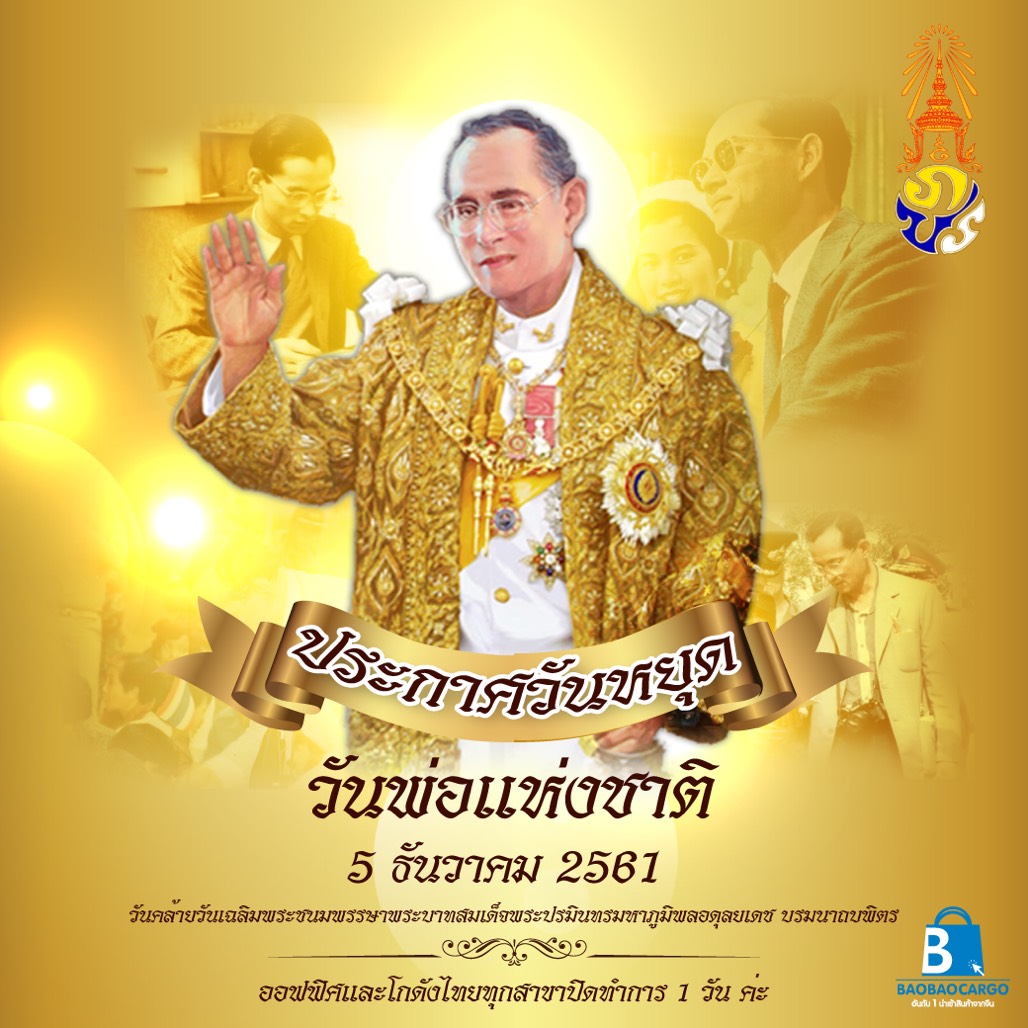 ประกาศวันหยุด เนื่องในวันพ่อแห่งชาติ 5 ธันวาคม 2561
