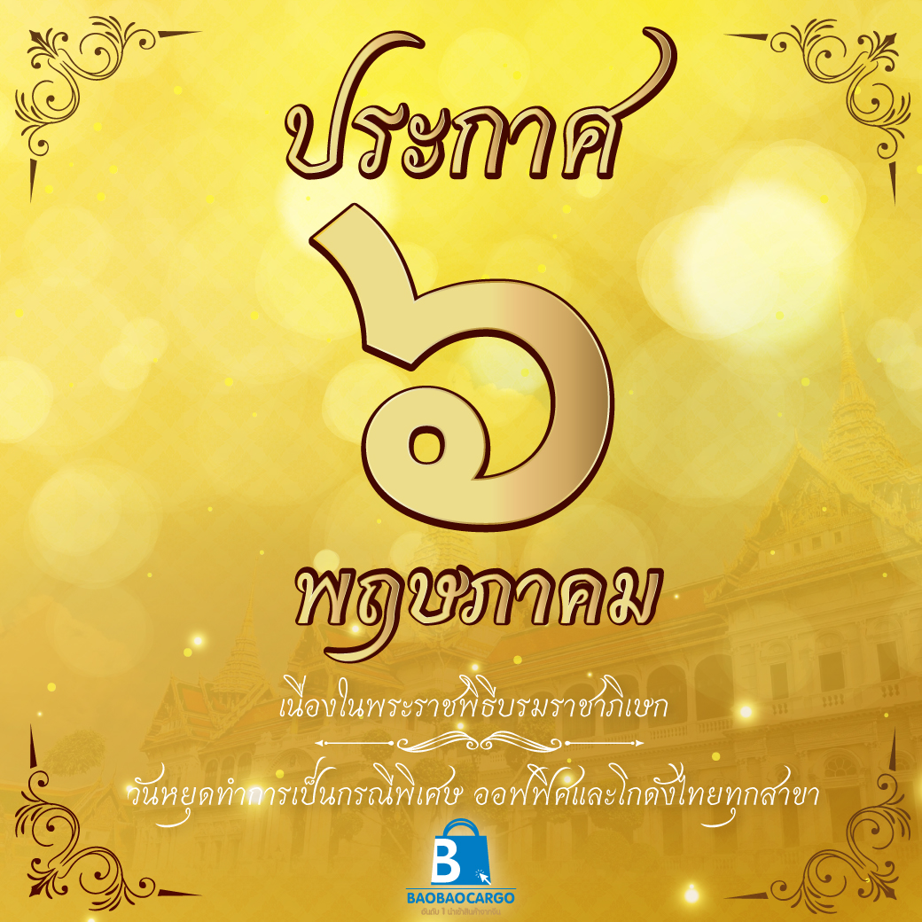 ประกาศวันหยุด 6 พฤษภาคม 2562 "เนื่องในพระราชพิธีบรมราชาภิเษก"