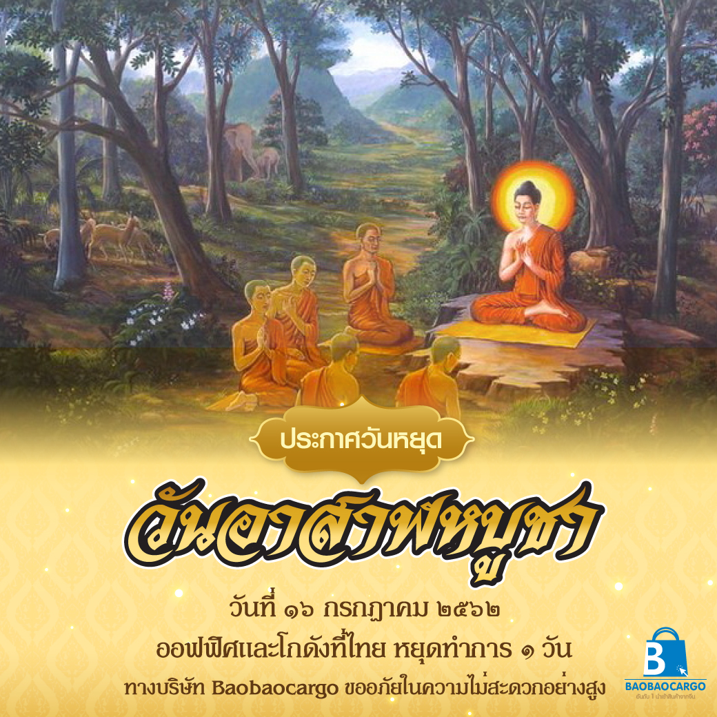 ประกาศวันหยุด 16 กรกฎาคม 2562 "เนื่องในวันอาสาฬหบูชา"