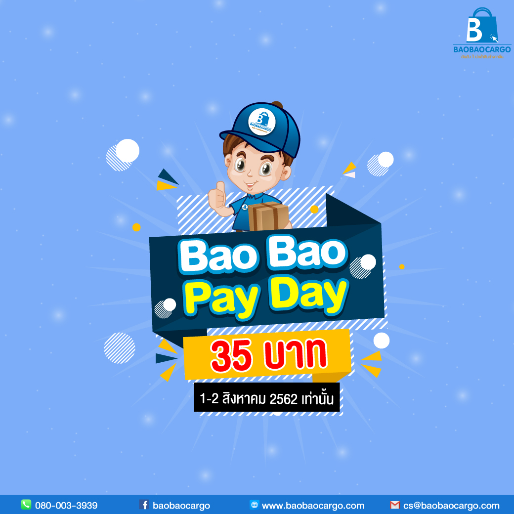 โปรโมชั่น PayDay รับค่าขนส่งกิโลกรัมละ 35 บาท ภายในวันที่ 1-2 สิงหาคม 2562