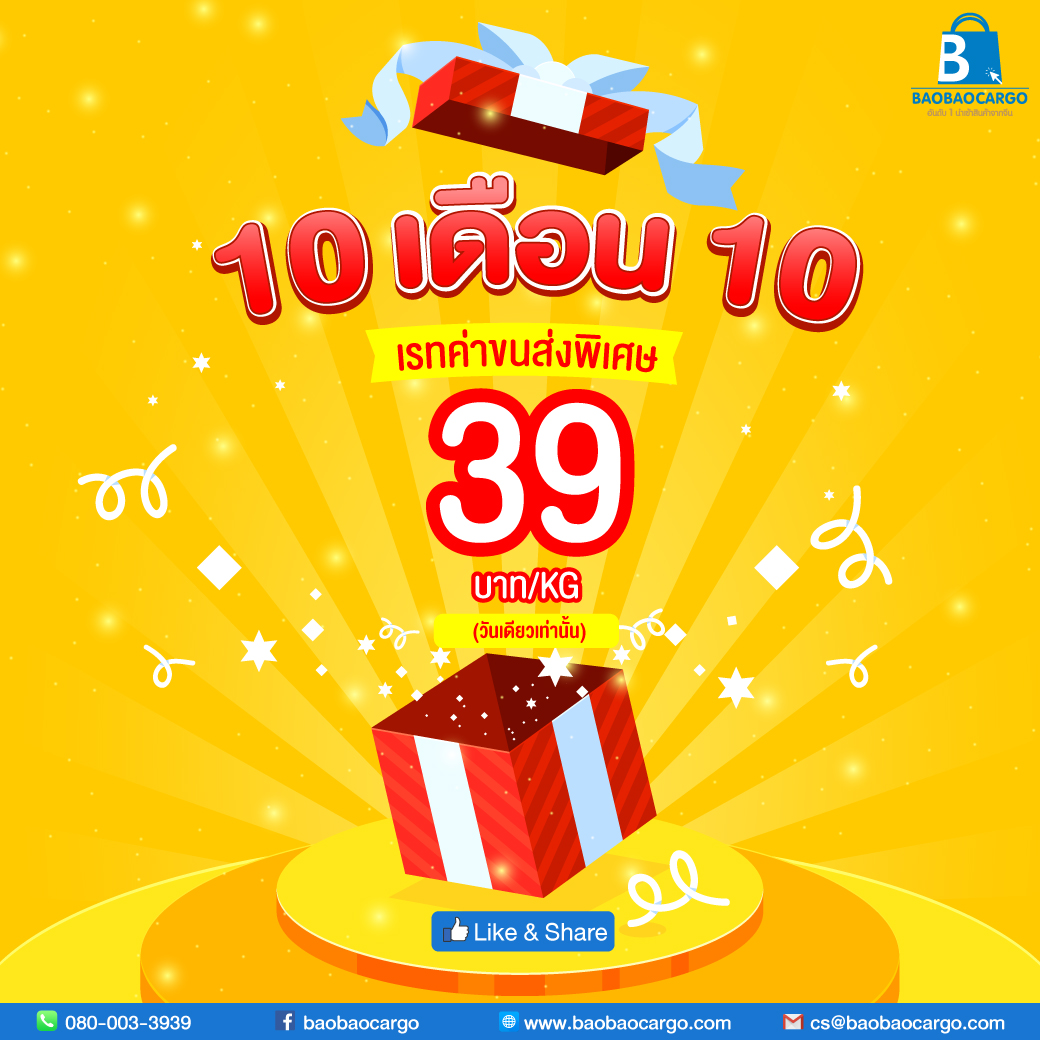 10.10 SuperSale กด Like & share รับค่าขนส่งกิโลกรัมละ 39 บาท